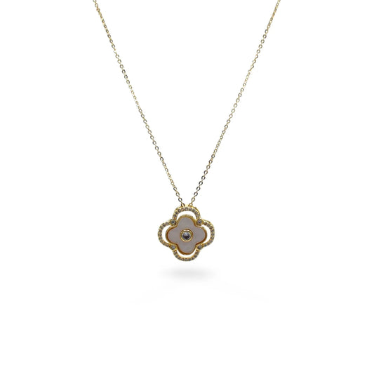 COLLAR TRÉBOL BLANCO CON SILUETA DE ZIRCONIAS