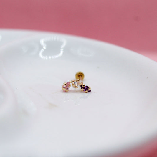 LAMBADA TRES ZIRCONIAS ROSA, MORADA Y BLANCA 10K