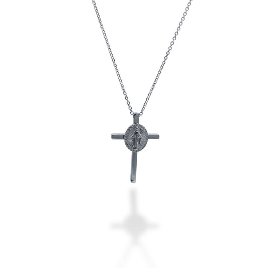 COLLAR CRUZ GRANDE VIRGEN EN MEDIO CON ZIRCONIAS