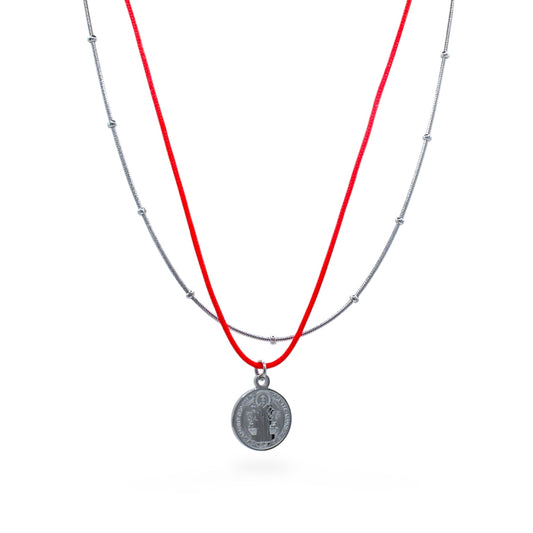 COLLAR PLATEADO DOBLE CON DIJE DE SAN BENITO