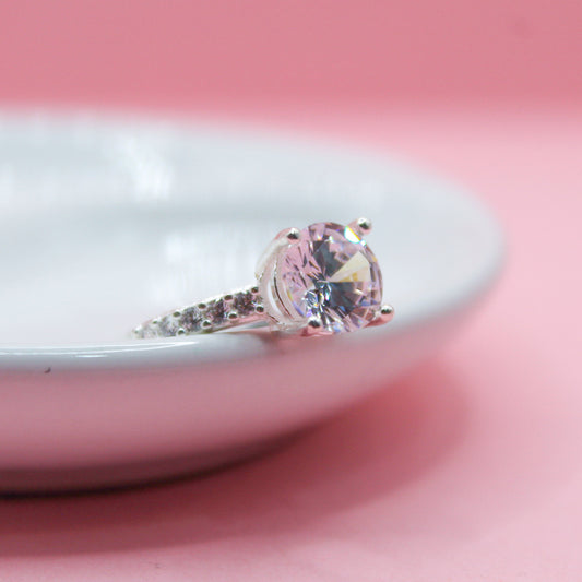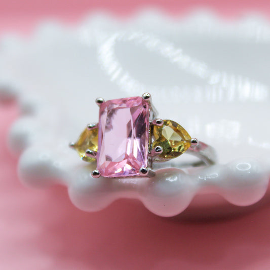 ANILLO ZIRCONIA ROSA Y AMARILLAS PLATEADO