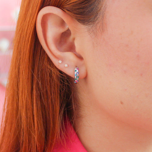 ARRACADAS PLATEADAS CON BRILLOS ARCOIRIS