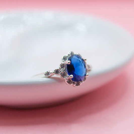 ANILLO ZIRCONIA AZUL OVALADA PEQUEÑA .925