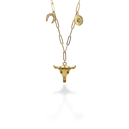 COLLAR CRANEO VACA HERRADURA Y SOMBRERO