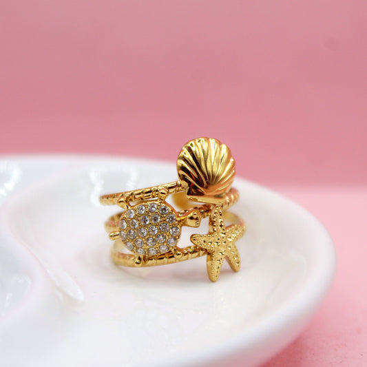 ANILLO TORTUGA, CONCHA Y ESTRELLA DE MAR