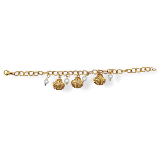 PULSERA DIJES DE CONCHA CON PERLAS COLGANTES