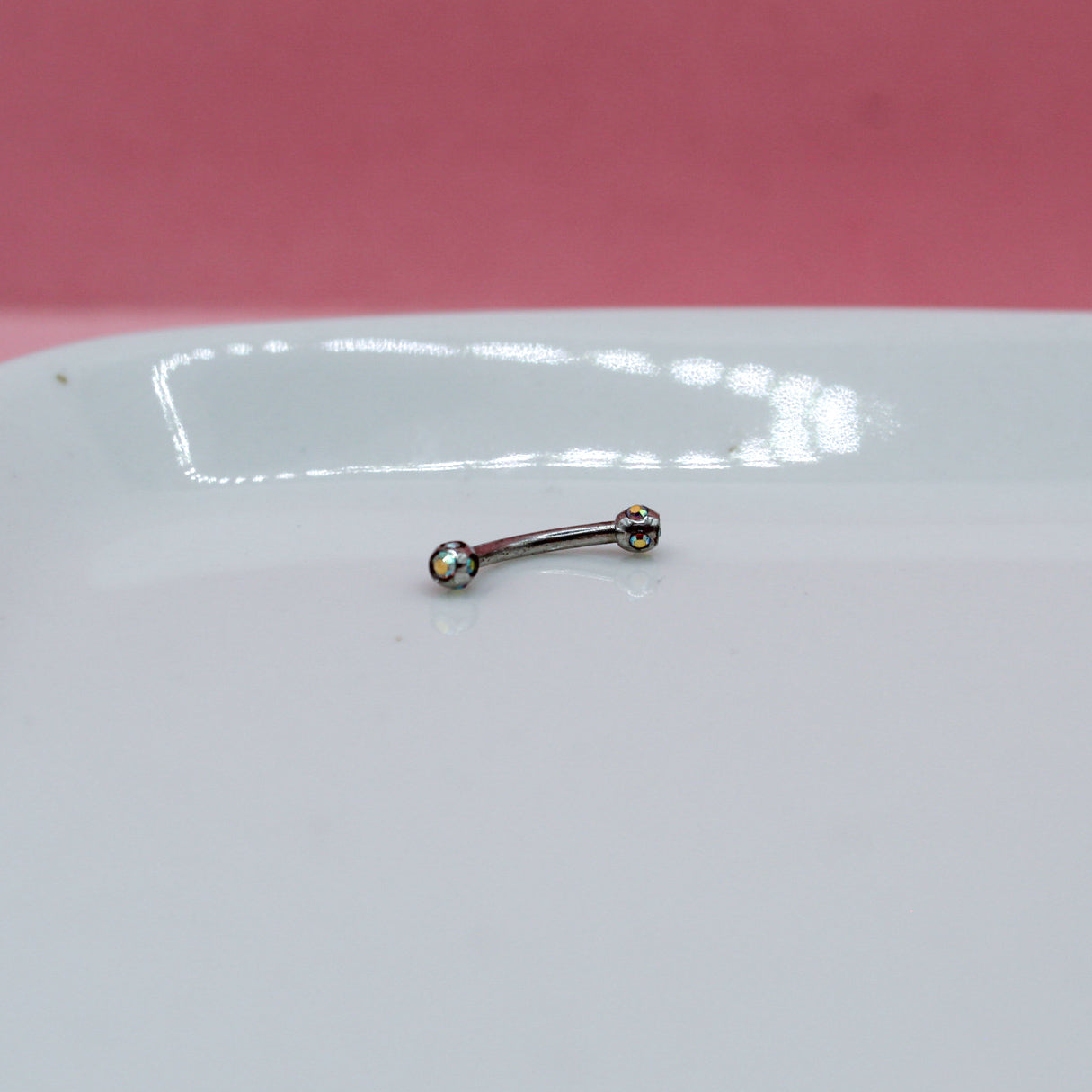 BANANA PLATEADA BOLA CHICA ZIRCONIAS TORNASOL 316L