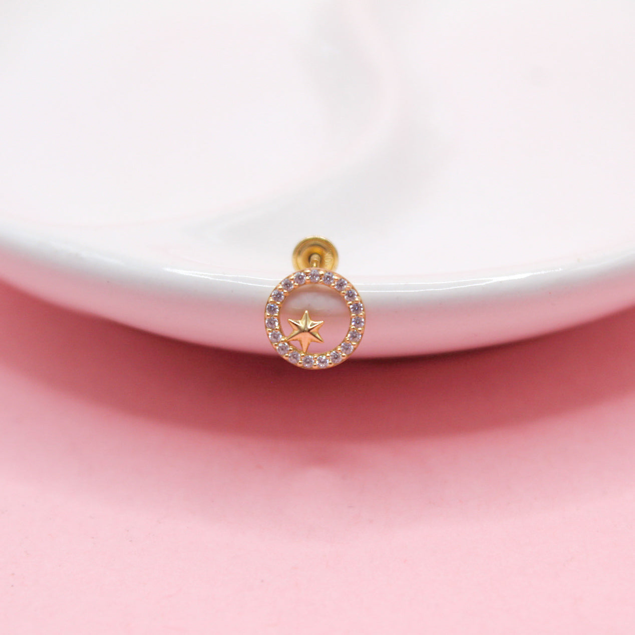 CIRCULO ZIRCONIAS CON ESTRELLA CENTRO ORO JAPONES 10K