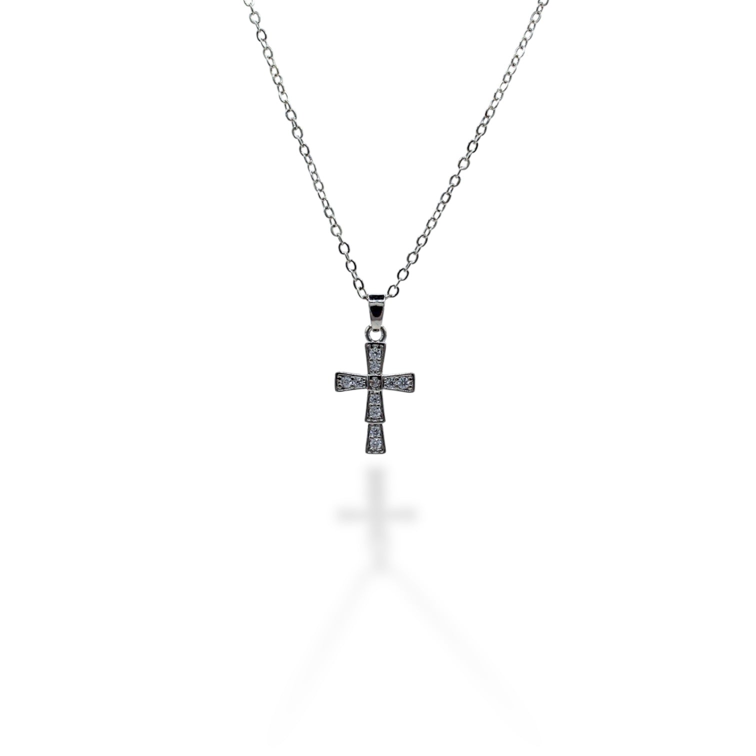 COLLAR PLATEADO CRUZ ZIRCONIAS FRAGMENTADA