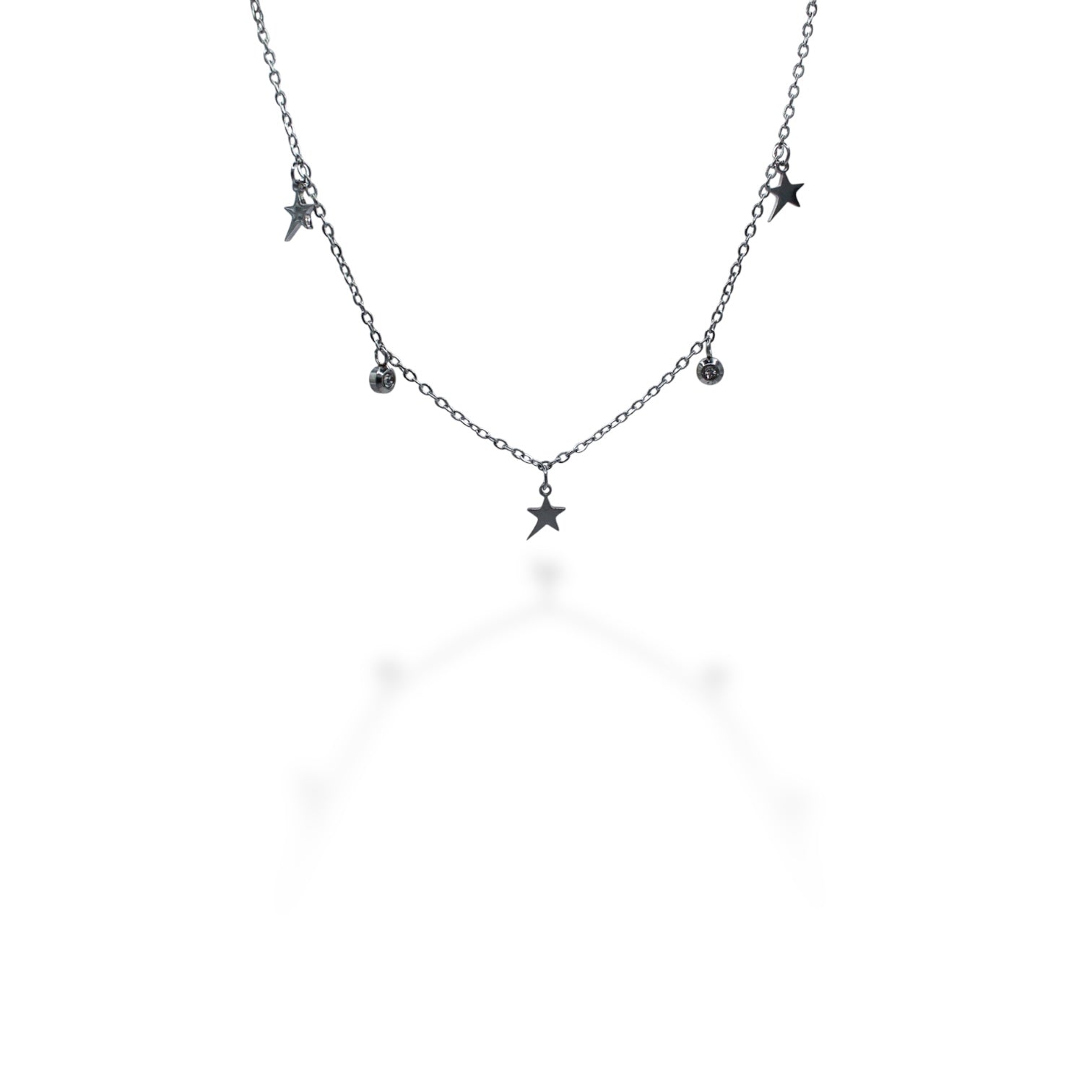 COLLAR PLATEADO ESTRELLA PICUDA Y ZIRCONIAS