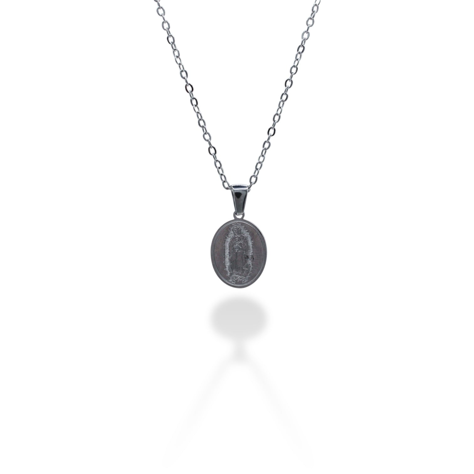 COLLAR PLATEADO VIRGEN OVALADA