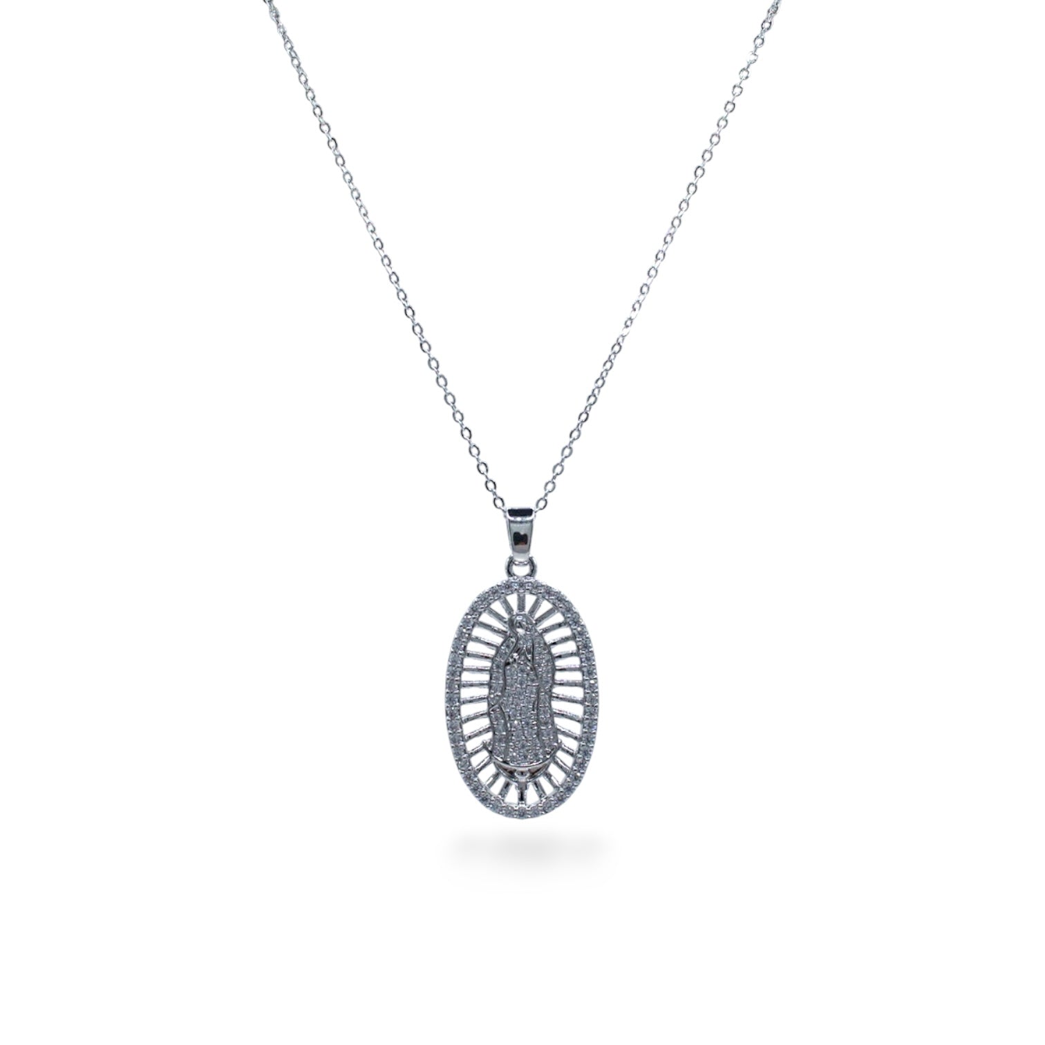 COLLAR PLATEADO VIRGEN OVALADA CON ZIRCONIAS