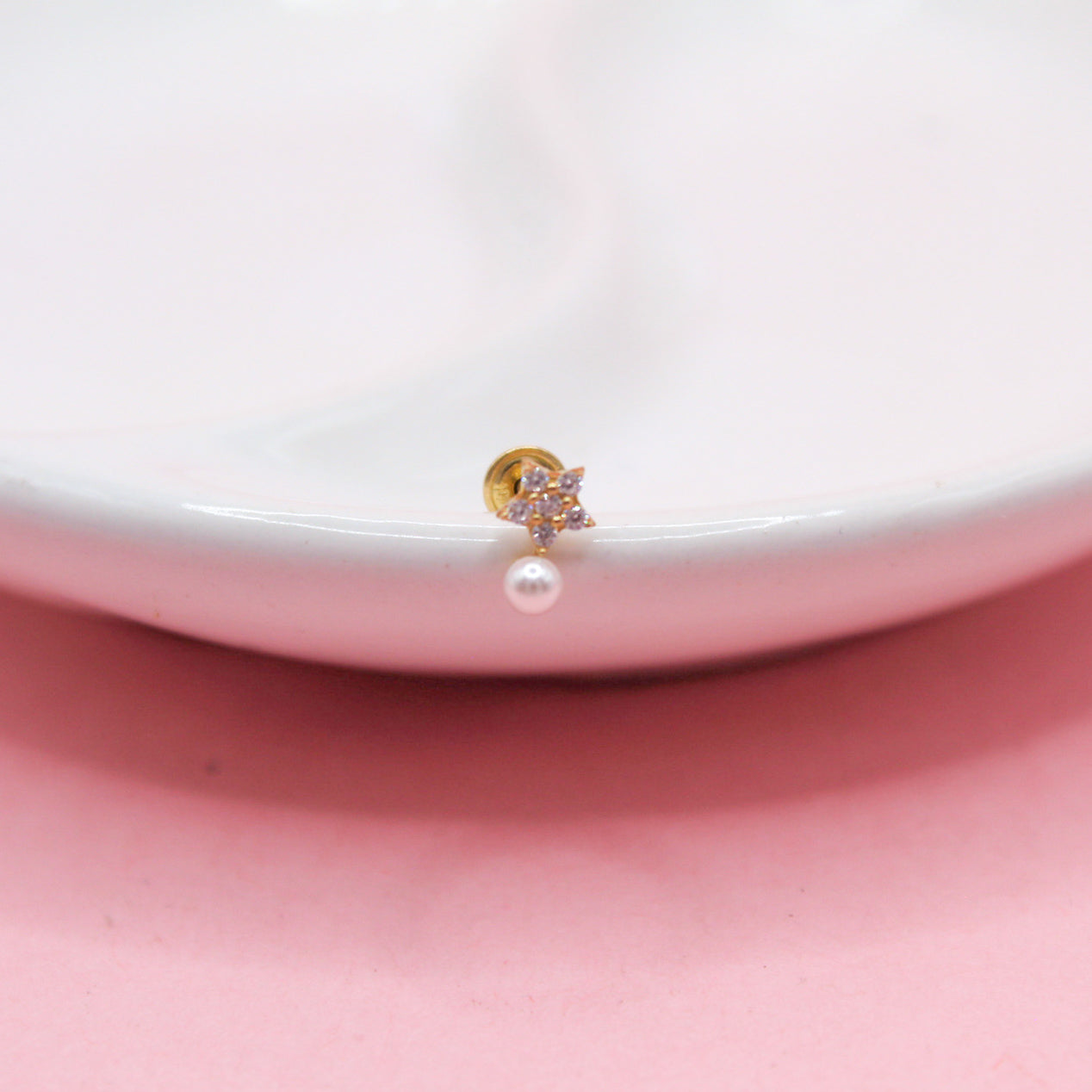 ESTRELLA CHICA ZIRCONIAS Y PERLA ORO JAPONES 10K