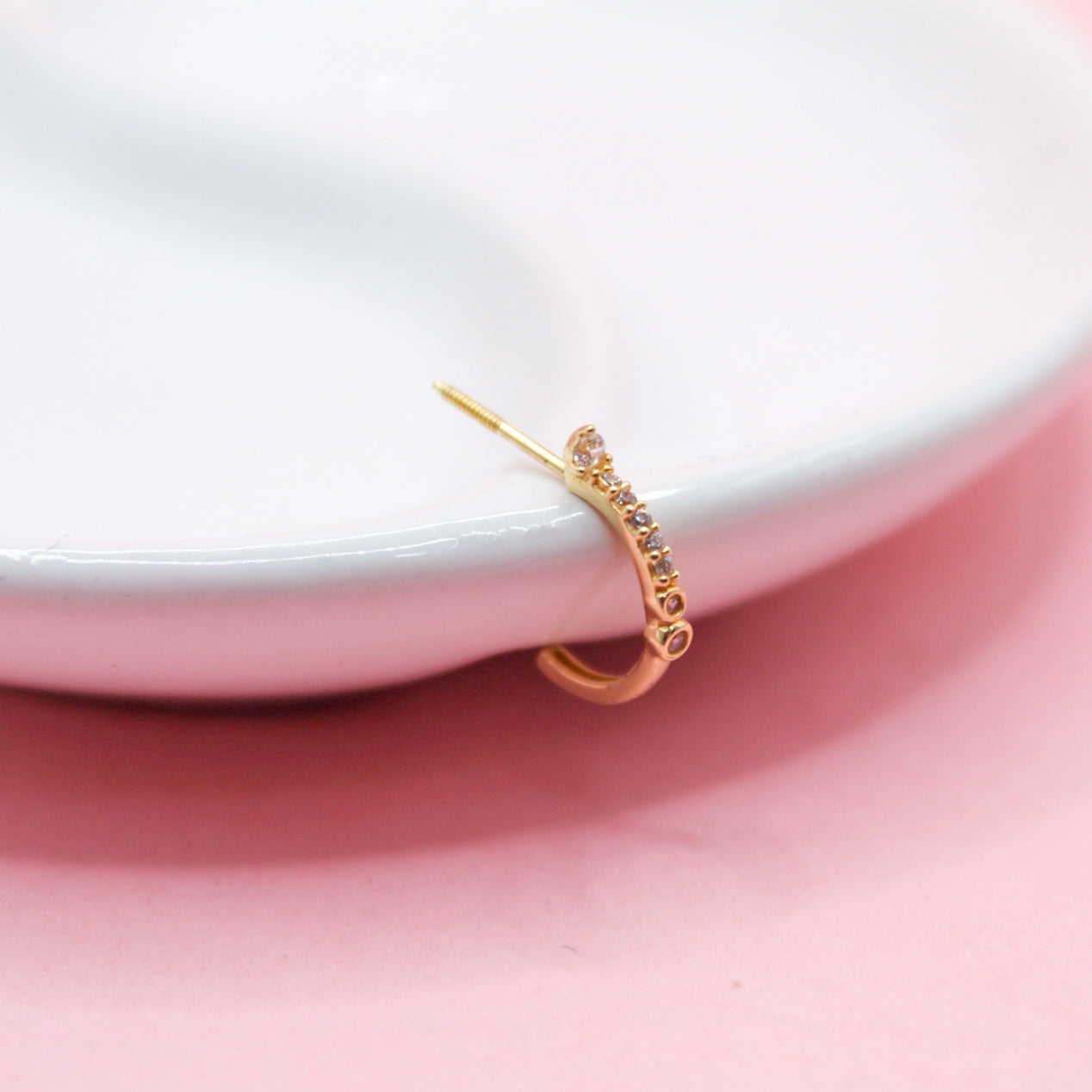 MEDIA ARRACADA MITAD ZIRCONIAS ORO JAPONES 10K