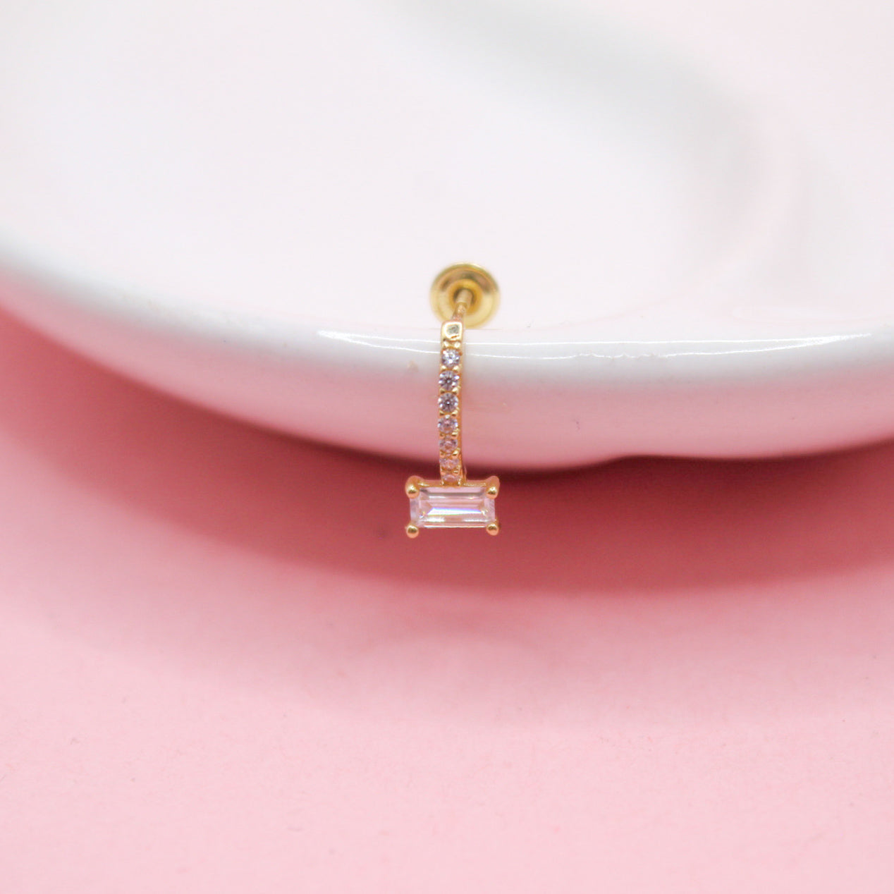 MEDIA ARRACADA ZIRCONIA CUADRADA Y ZIRCONIAS CIRCULARES ORO JAPONES 10K