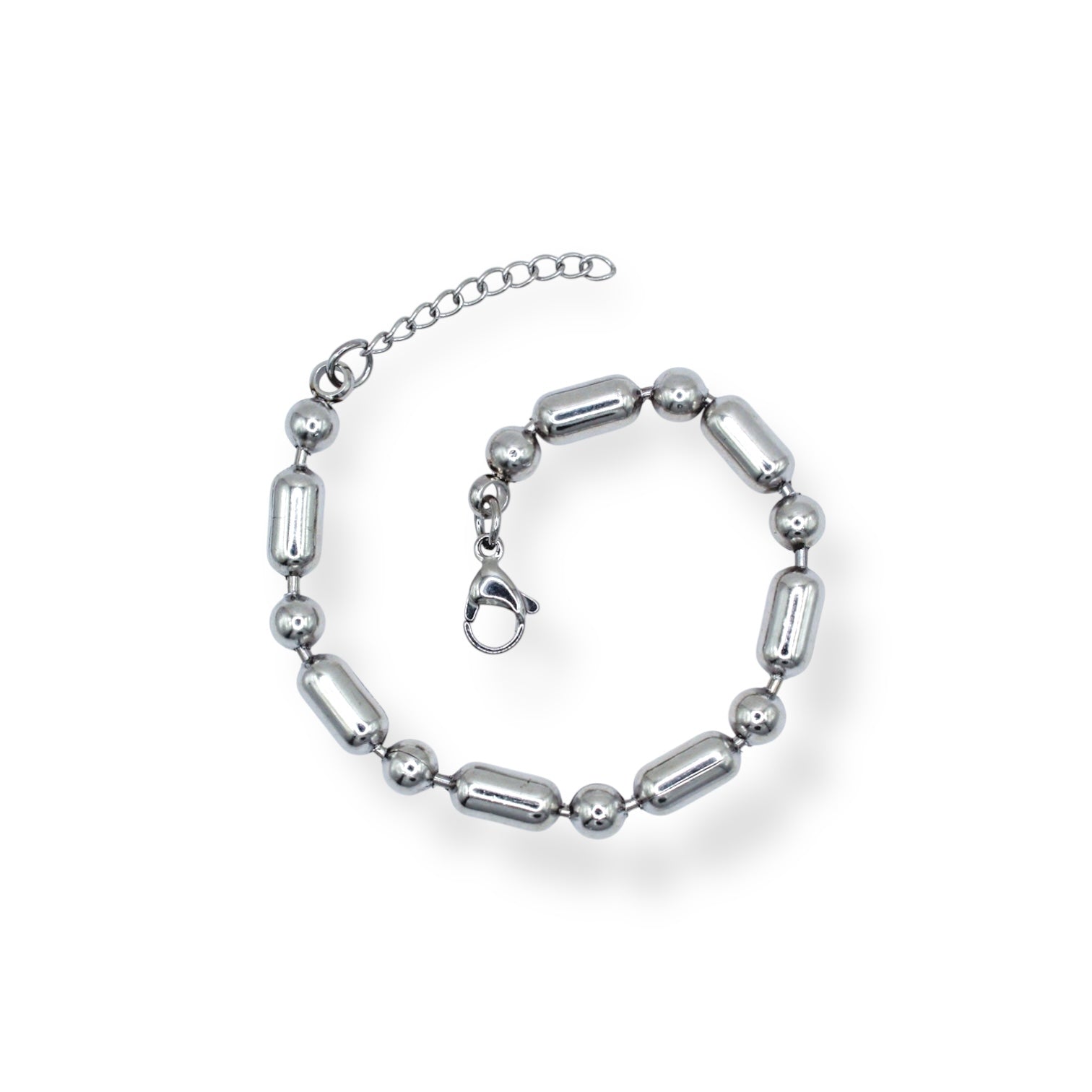 PULSERA PLATEADA BOLITAS Y CILINDROS LISOS