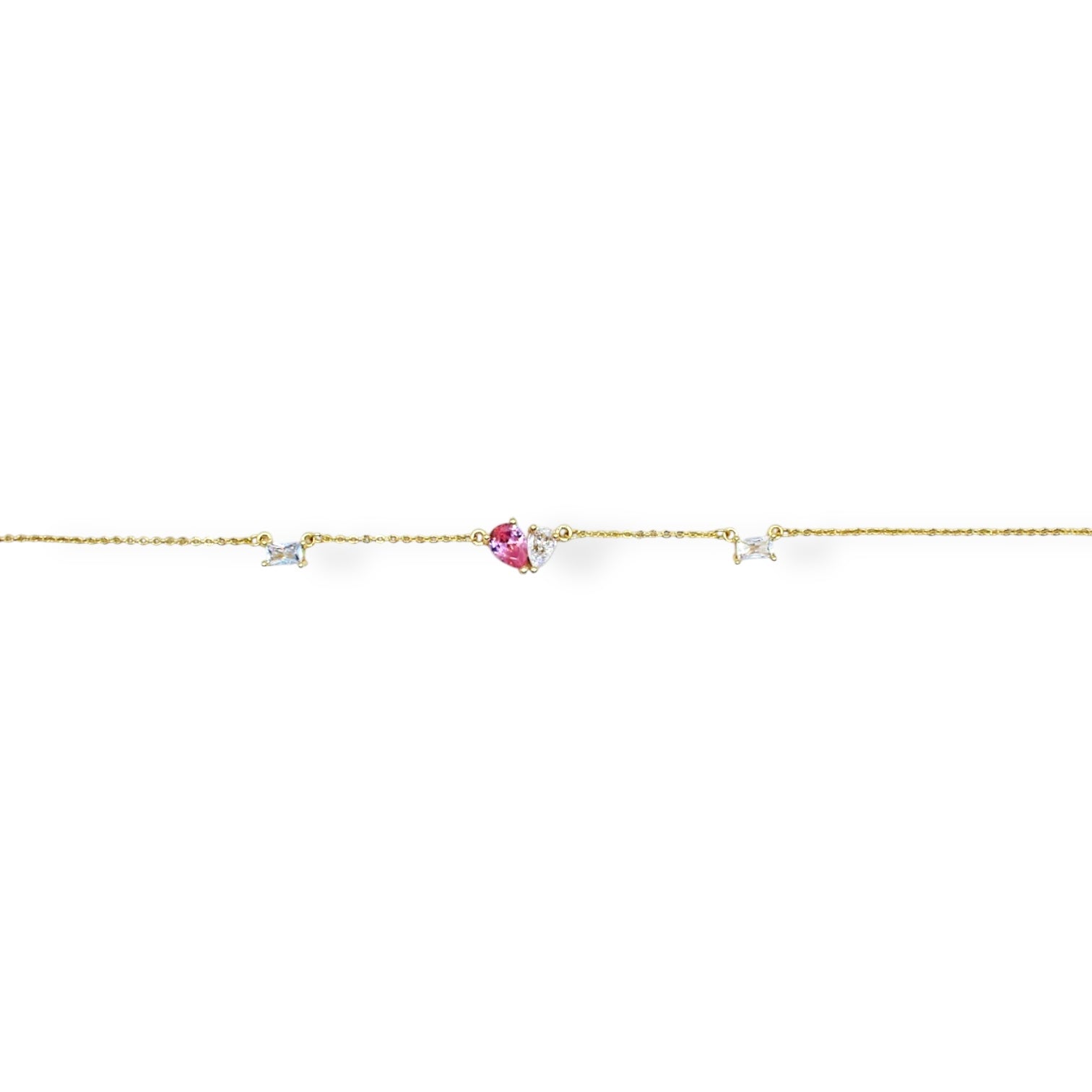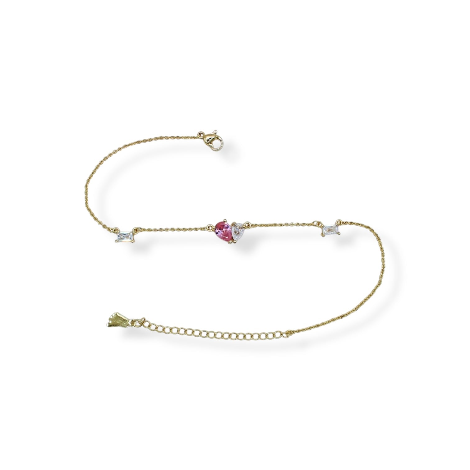 TOBILLERA CORAZÓN ZIRCONIA ROSA Y BLANCA