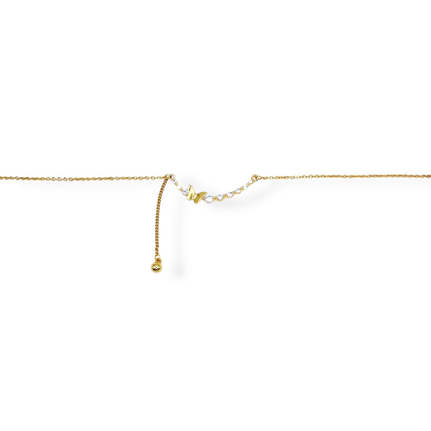 TOBILLERA CURVEADA DE MARIPOSA CON ZIRCONIAS Y BOLITA LISA COLGANTE