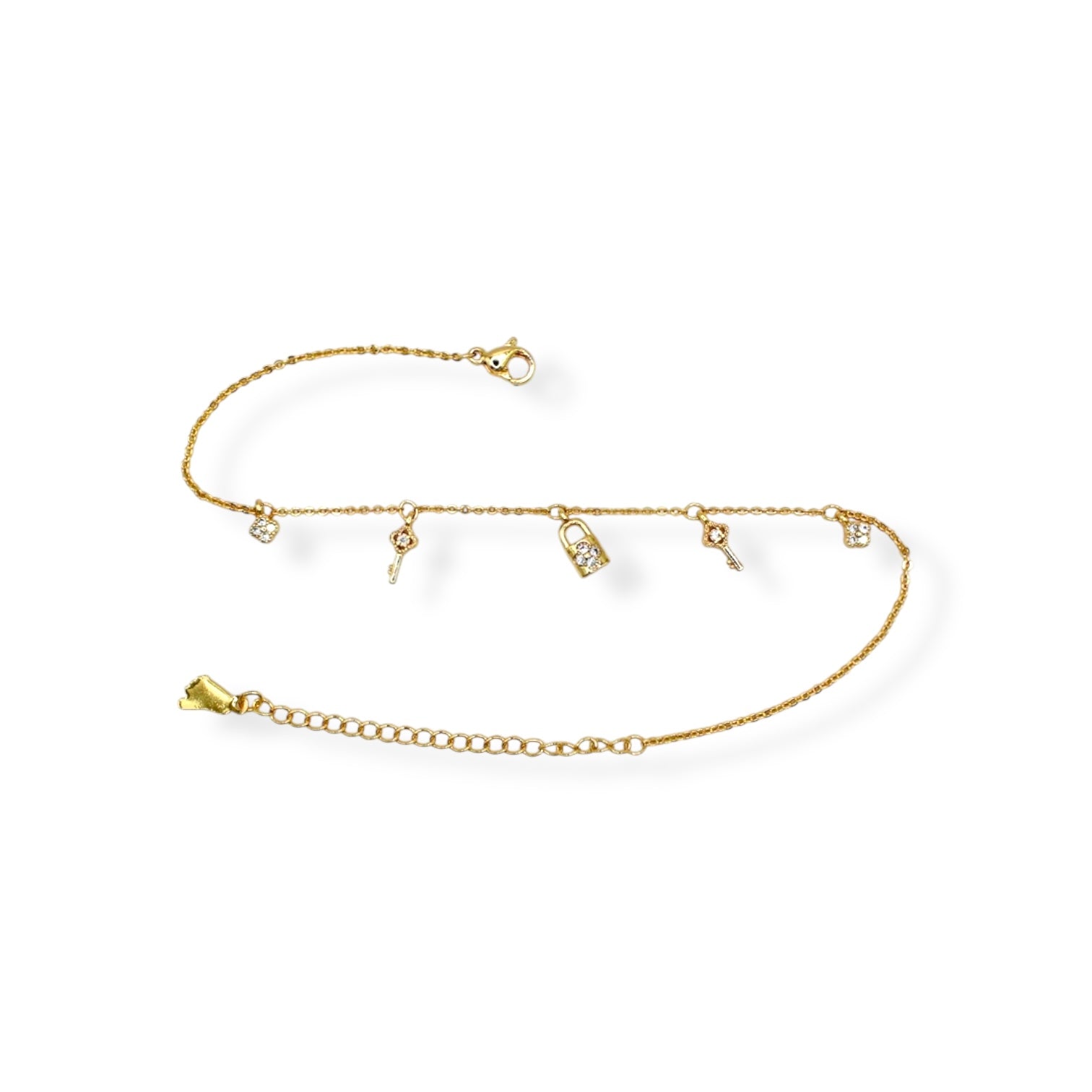 TOBILLERA LLAVES Y CANDADOS CON ZIRCONIAS